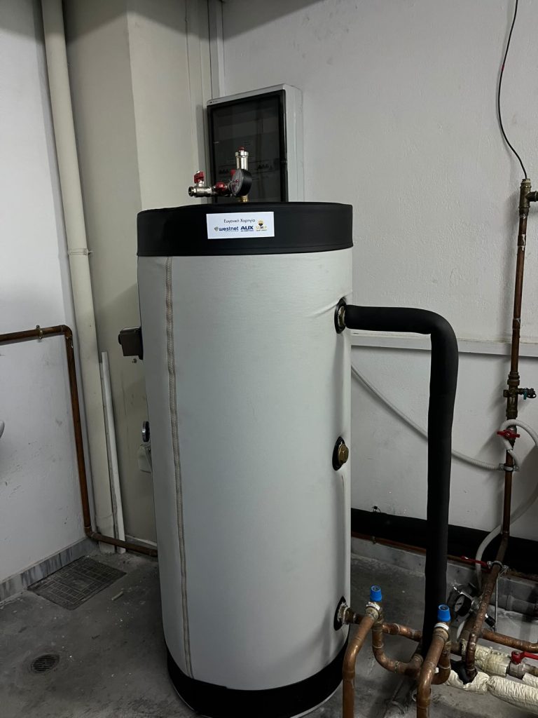 Στο πλαίσιο αυτό, προχωρήσαμε σε δωρεά στο Εθνικό Μετσόβιο Πολυτεχνείο μιας αντλίας θερμότητας AUX 16 kW τελευταίας τεχνολογίας με ψυκτικό R290, πλήρους υδραυλικού εξοπλισμού, φωτοβολταϊκού πεδίου 10 kW, μπαταρίας 10 kWh, τριφασικού υβριδικού inverter, καθώς και ολοκληρωμένου συστήματος διαχείρισης ενέργειας (ΗEMS). Ολόκληρο το σύστημα – αντλία θερμότητας, φωτοβολταϊκά, μπαταρία και inverter – διαθέτει δυνατότητα απομακρυσμένης παρακολούθησης και διαχείρισης.